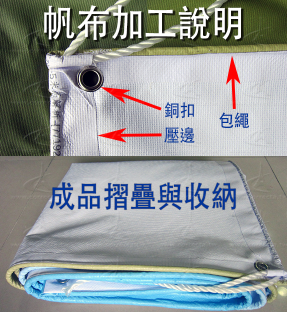 加工:銅扣四個方便固定,帆布加包繩避免變形或破裂